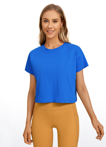 Pima Cotton Crew Neck Cropped Short Sleeve